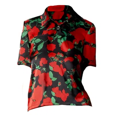 Women's Red / Black / Green Oeil De Boeuf Chinese Blossom Noir Polo In Red/black/green