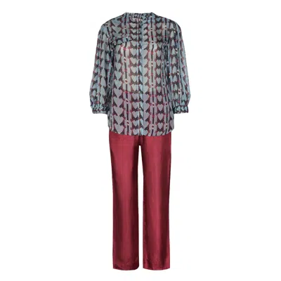 Blue / Red The French Revelation Blouse & Skirt Set In Multi