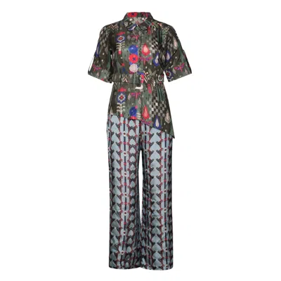 Green / Red The Pleated Verse Blouse In Multi
