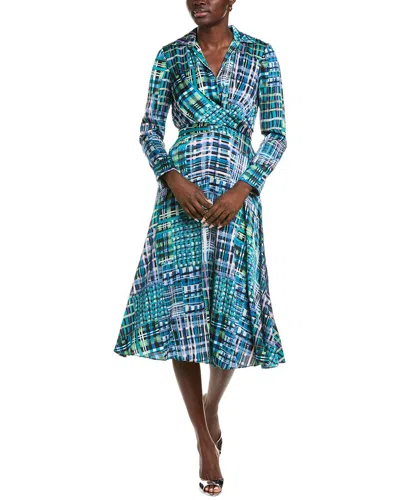 Striped Faux Wrap Dress In Navy Teal In Multi