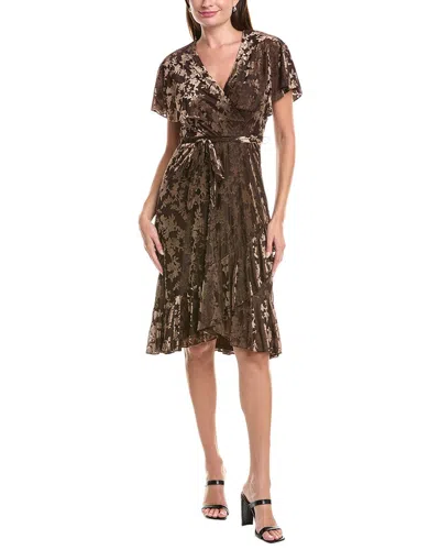 Faux Wrap Houndstooth Print Midi Dress In Black Taupe
