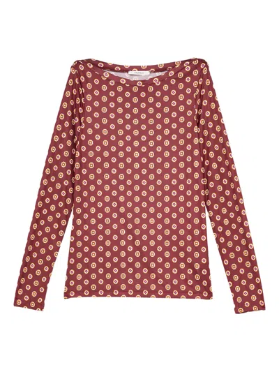 Geometric-print Boat-neck Top In Red