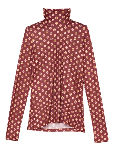 Geometric-print Turtleneck Top In Red