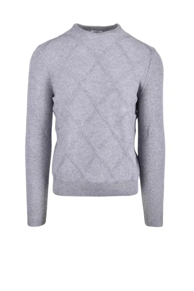 Light Grey Diamond Pattern Knit Sweater In Purple