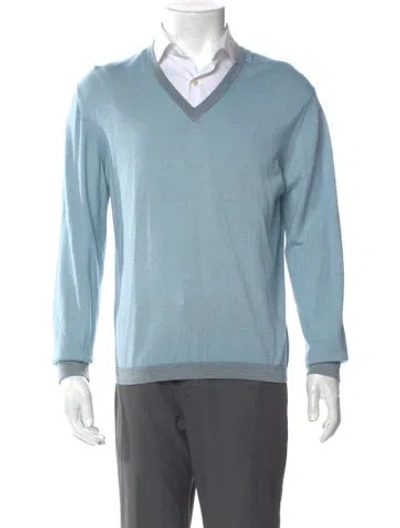 Pre-owned Virgin Wool V-neck Pullover In Blue