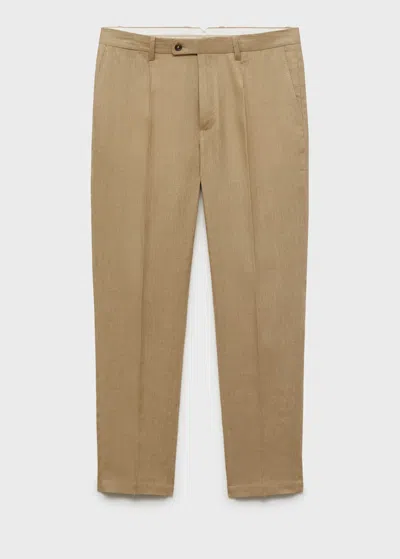 Slim-fit 100% Linen Trousers Beige In Sand