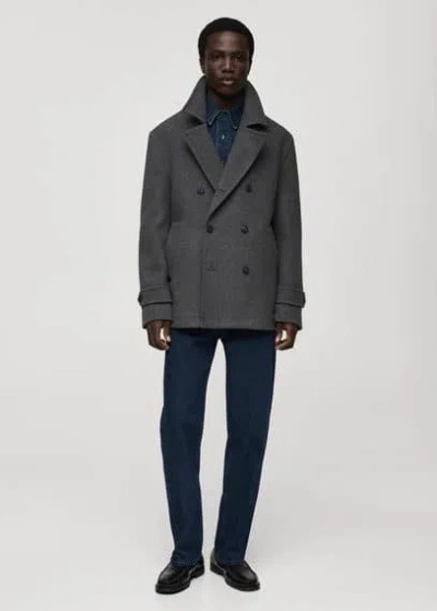 Short Double-breasted Wool Coat Medium Heather Grey In Gray