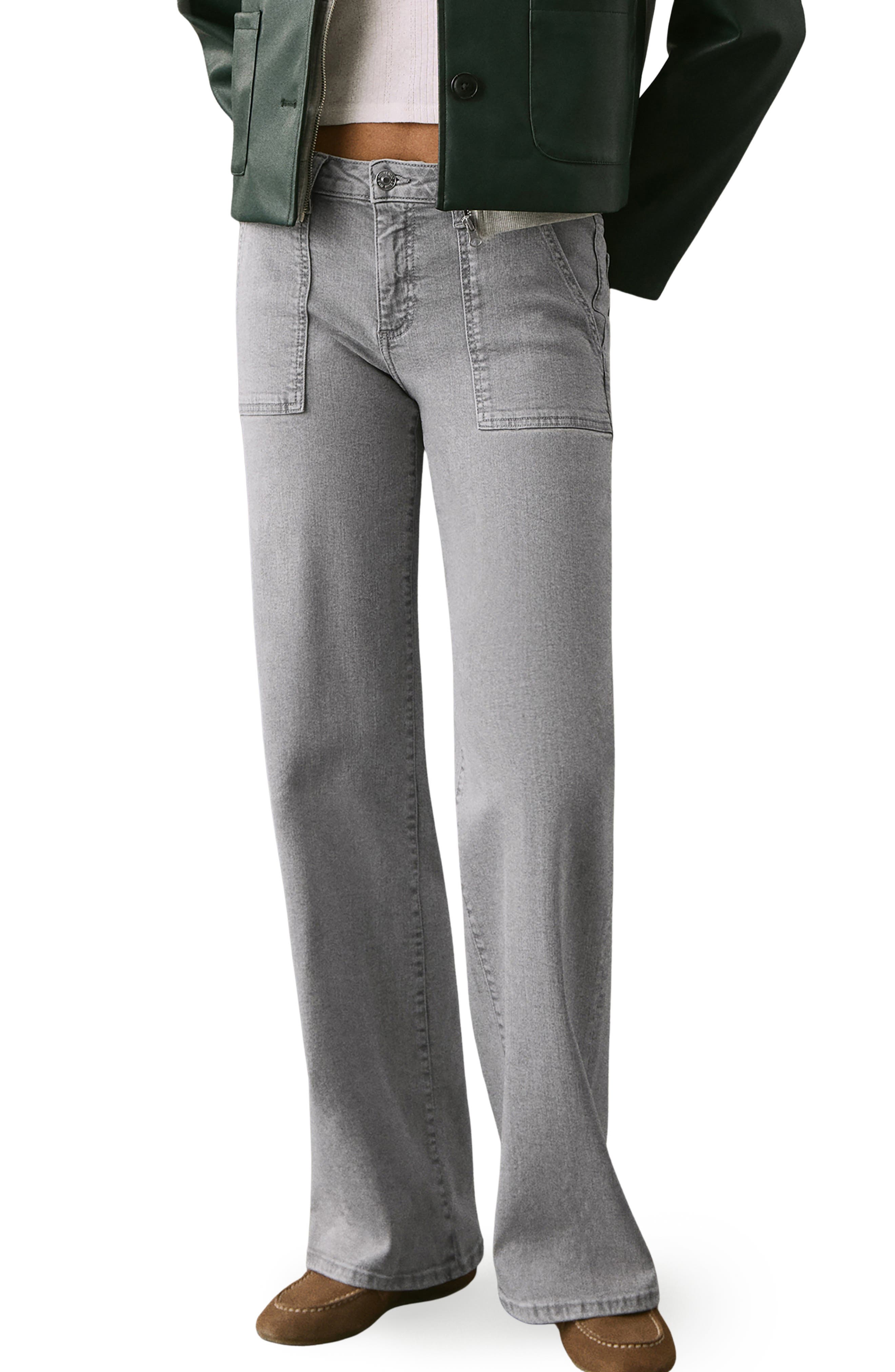 Buckle Low Rise Wide Leg Cargo Jeans In Gray