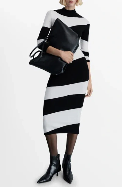 Perkins Stripe Long Sleeve Midi Dress In Black