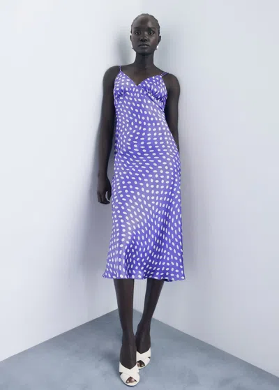 Polka-dot Satin-finish Dress Blue In Purple