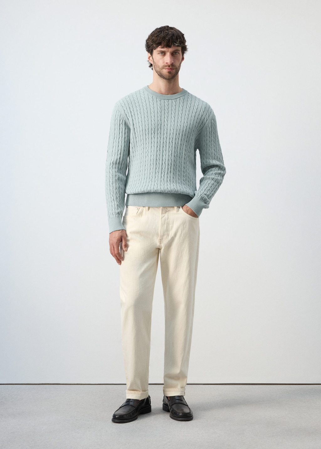 Pull 100 % Coton Maille Torsadée Vert D´eau - Homme - Xxl - Man In Multi