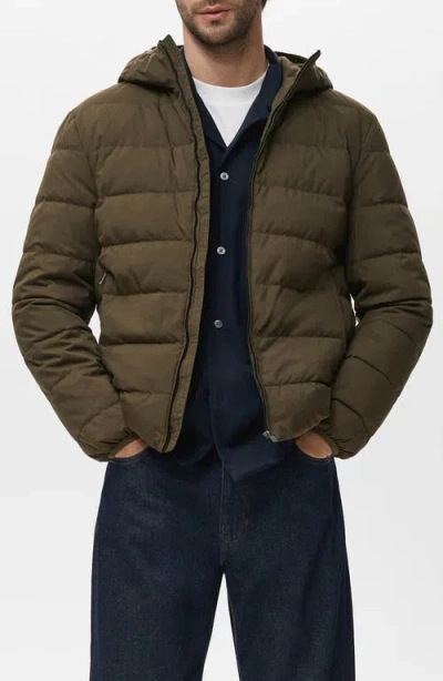 Water Repellent Quilted Down Hooded Jacket In Green