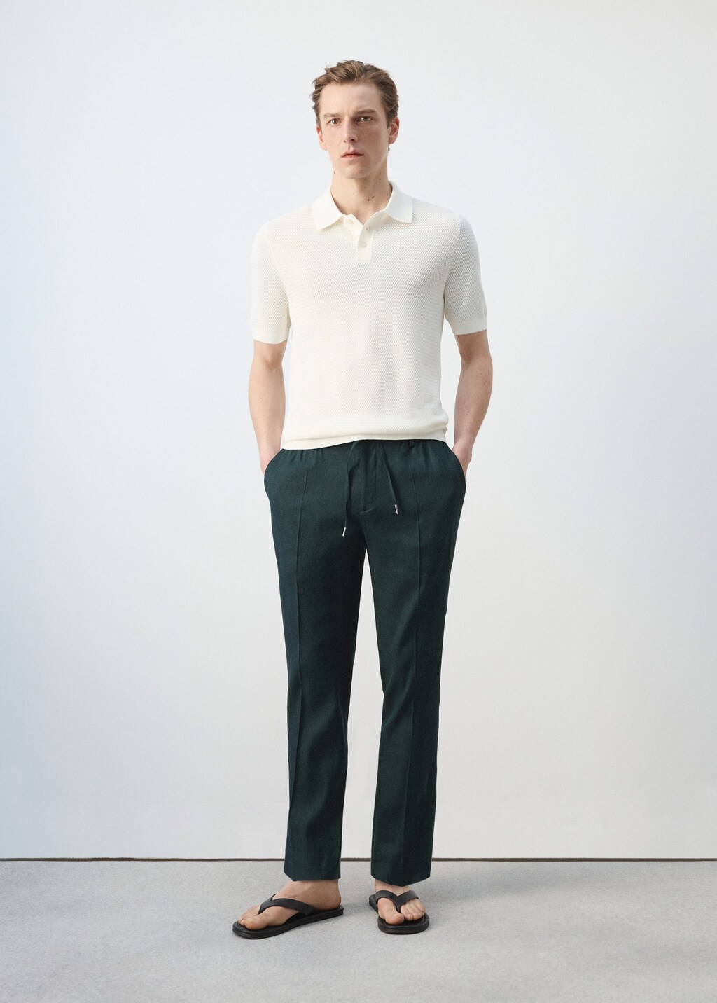 Pantalon Slim Fit Lin Cordon Vert Foncé - Homme - 46 - Man In Green
