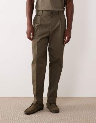 Paris 100% Cotton Pleat Front Tailored Straight Pants In Neutral