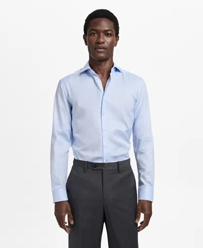 Slim Fit Structured Cotton Button-up Shirt In Blue