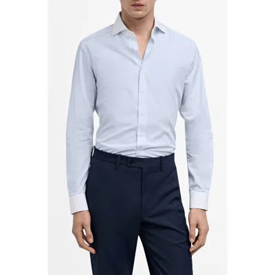 Slim Fit Stripe Button-up Shirt With Contrast Collar In Sky Blue