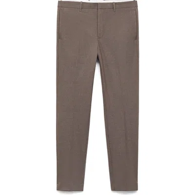 Slim Fit Flat Front Cotton Stretch Twill Chinos In Brown