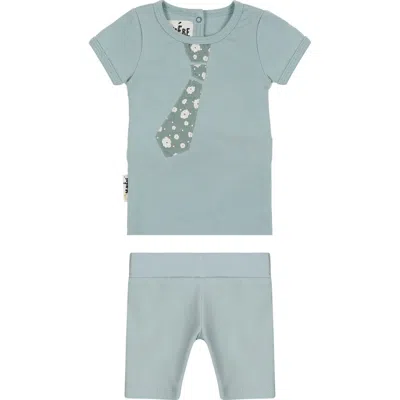 Babies' Manière Fly Away Tie Short Sleeve T-shirt & Shorts Set In Green