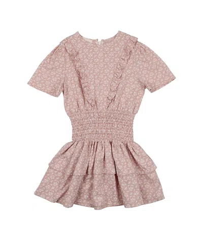 Girls' Smocked Floral Short Sleeve Dress - Little Kid In Pink