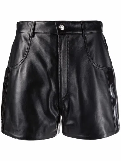 Black Genuine Leather Patent Patch High Waisted Shorts Fr34 Xs