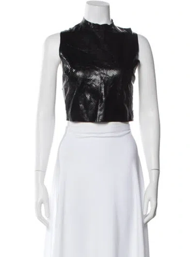 Pre-owned Leather Mock Neck Crop Top In White