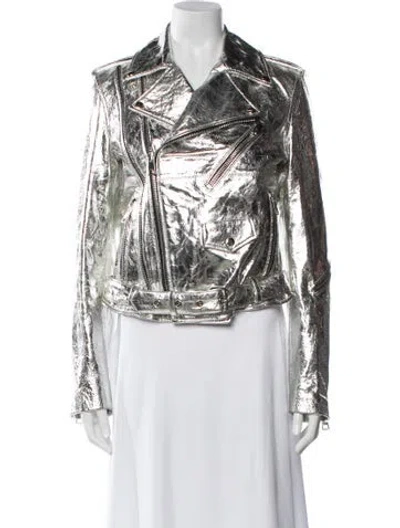 Pre-owned Leather Printed Biker Jacket In Silver