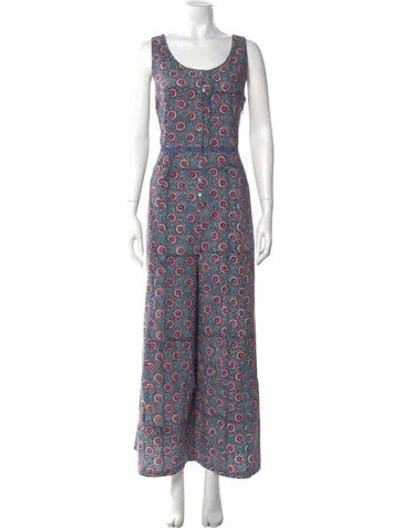 Pre-owned Printed Scoop Neck Jumpsuit In Blue
