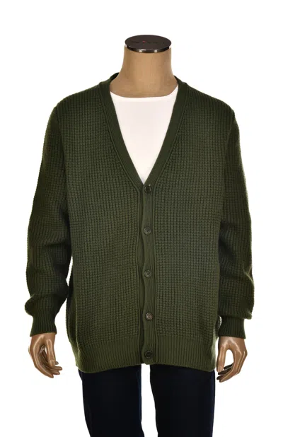 Cashmere V-neck Button Up Thick Knit Cardigan In Green