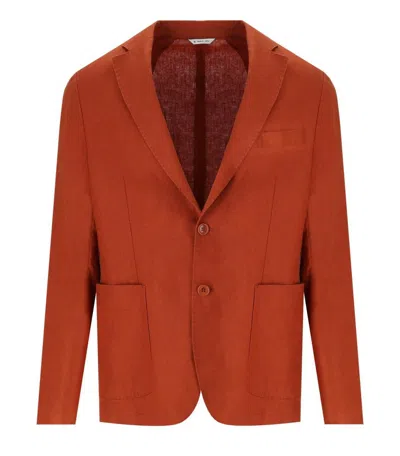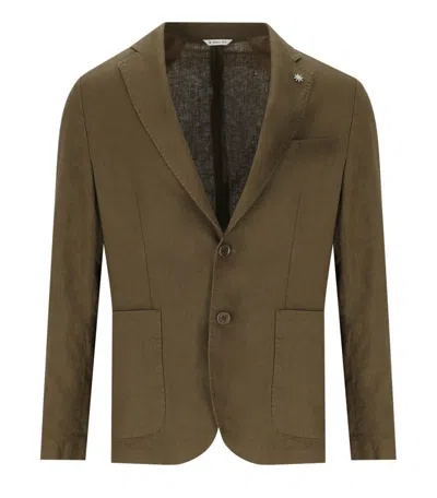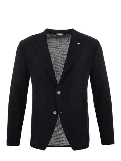 Double-breasted Chevron Linen Cotton Blue Jacket In Black