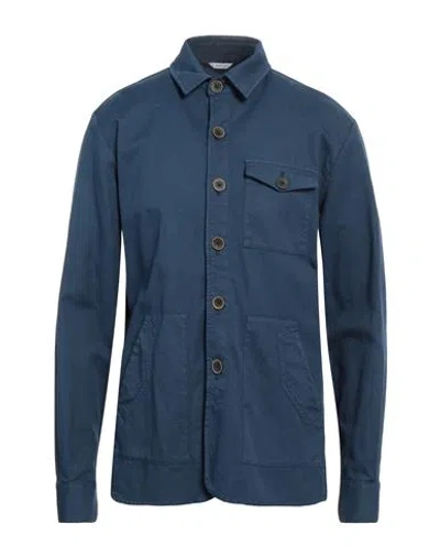 Man Shirt Navy Size 46 Cotton, Linen, Elastane In Navy Blue