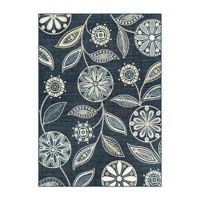 Modern Floral Collection Skid Resistant Indoor Rectangular Area Rug In Blue