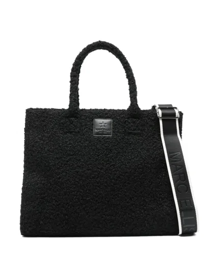 Shearling-trim Shoulder Bag In Black
