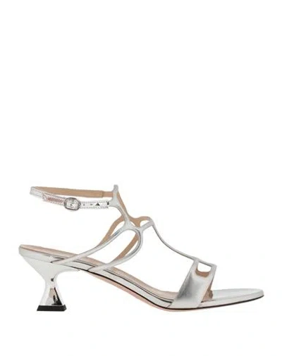 Woman Sandals Platinum Size 10 Soft Leather In Grey