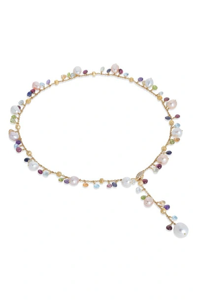 18k Yellow Gold Paradise Pearl Diamond, Mixed Gemstone And Cultured Freshwater Pearl Y Necklace, 17