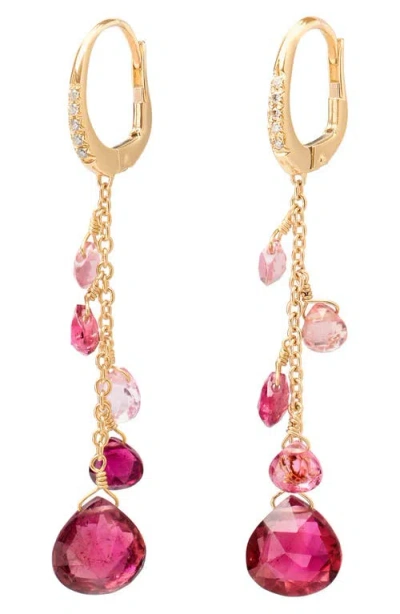 Paradise Tourmaline Drop Earrings In Pink/18k Yellow Gold