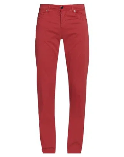 Man Pants Red Size 34 Cotton, Silk, Elastane