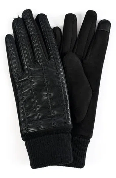 Pleated Faux Leather Jersey Knit Gloves In Grey
