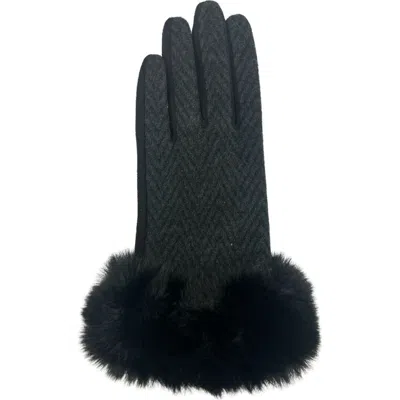Chevron Faux Fur Trim Gloves In Black
