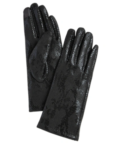 Women's Faux Suede Reptile Touchscreen Gloves In Black