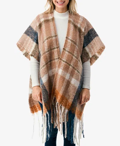 Women's Plaid Fringe-trim Blanket Scarf In Marigold