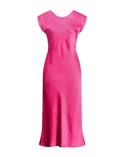 Woman Midi Dress Fuchsia Size 12 Polyester In Pink