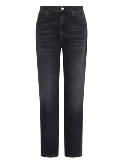 Topstitched Wide-leg Jeans In Black