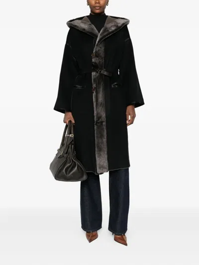 Fur-trim Coat In Black