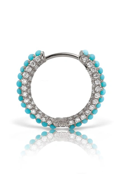 Single Turquoise & Diamond Pavé Huggie Hoop Earring In White Gold