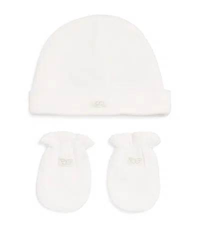 Kids' Pointelle Cotton Hat And Mitten Gift Set In Neutral