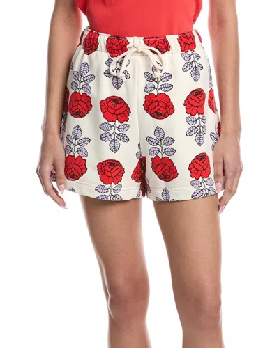 Miksaus Vihkiruusu Kioski Rose Print Cotton Fleece Drawstring Shorts In Off White Red Lilac