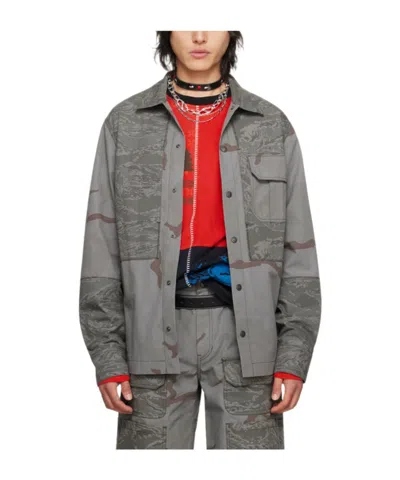 Camouflage Print Overshirt With Chest Pockets In Grey