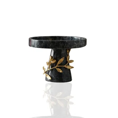 Gold / Black Set Of Three Black Marble Bowls With Gold Pyramid Stand In Multi