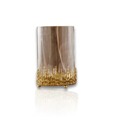 Gold / Black Victoria Candle Holder With Brass Leaves & Marble Base In Multi