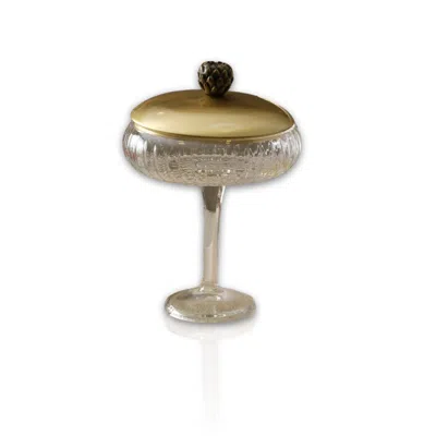Gold / White Large Gold Footed Glass Serving Stand With Brass Lid & Black Handle In Multi
